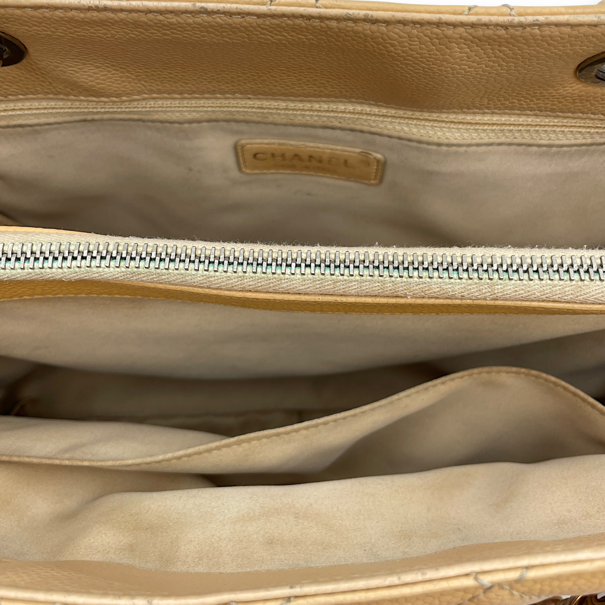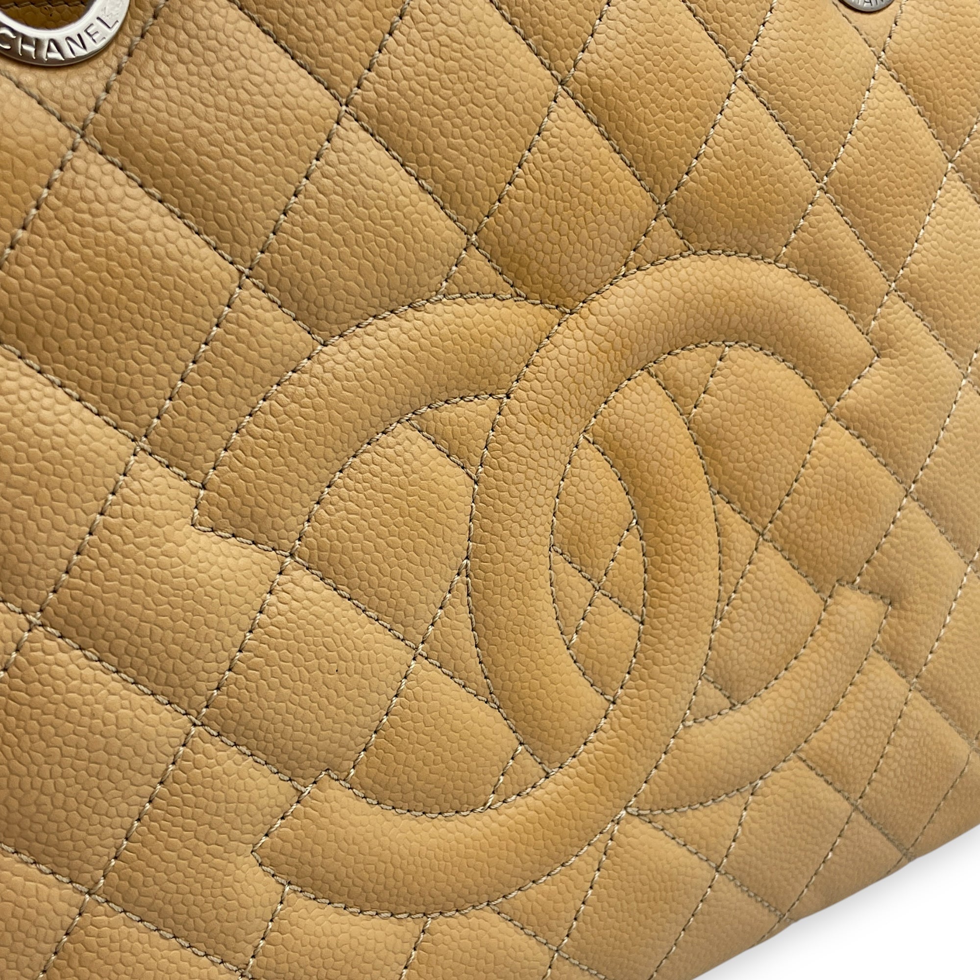 GST Beige Shoulder Bag in Caviar Leather, Silver hardware