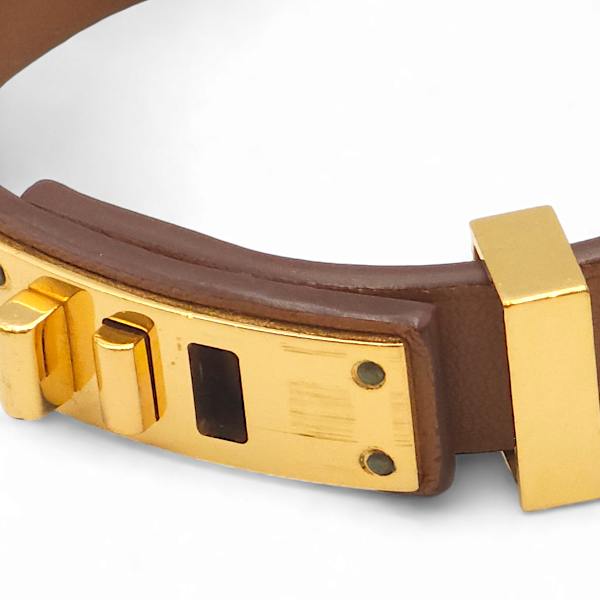 Be the first to review “Mini Dog T3 Brown Bracelet in Swift, Gold hardware”