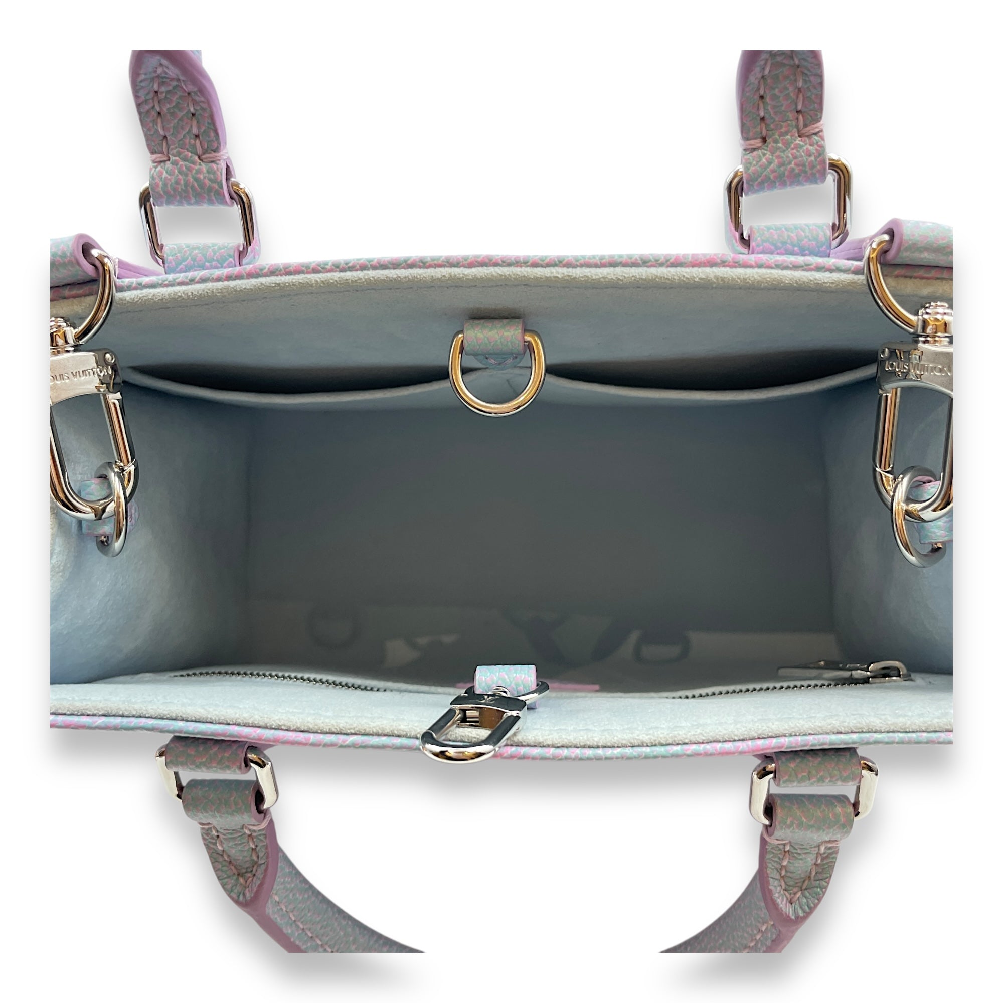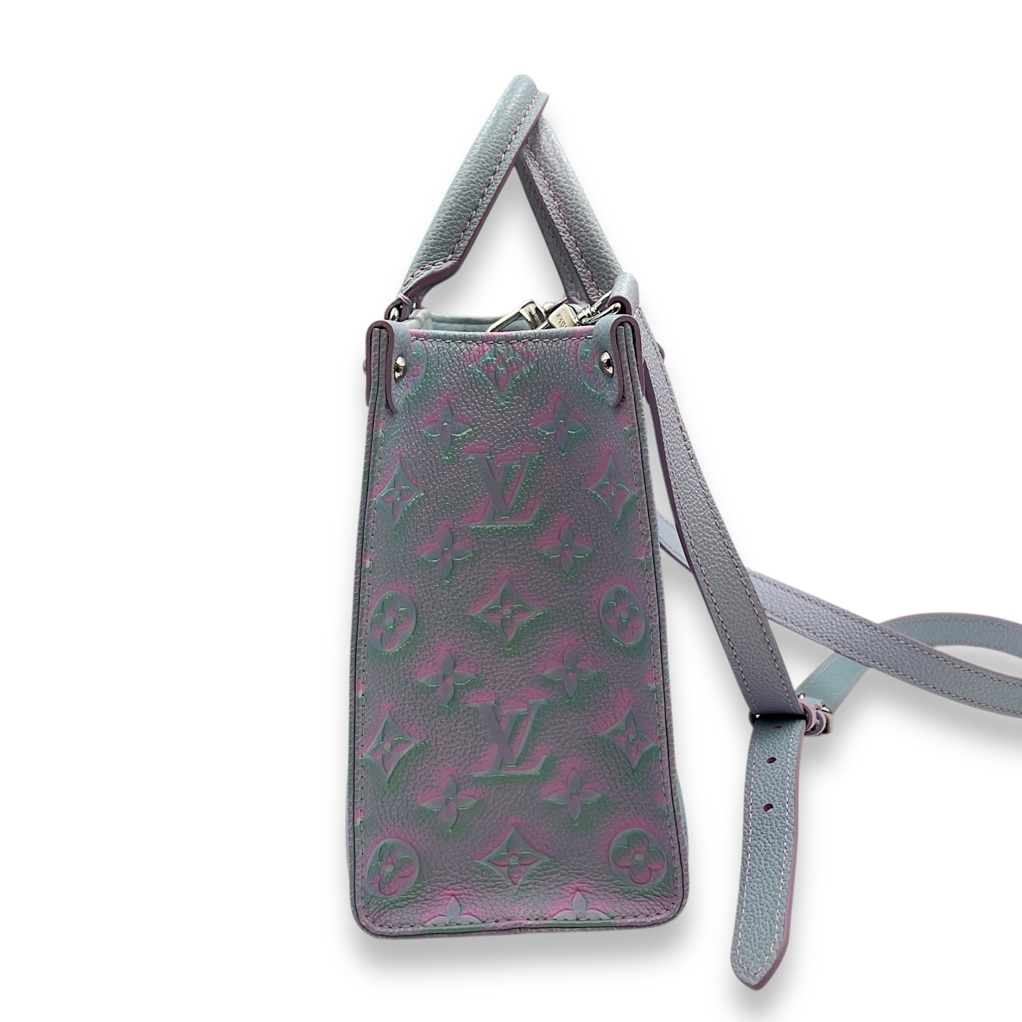 OnTheGo Stardust in Lilas Blue/Pink Top Handle Bag in Calfskin, Silver hardware