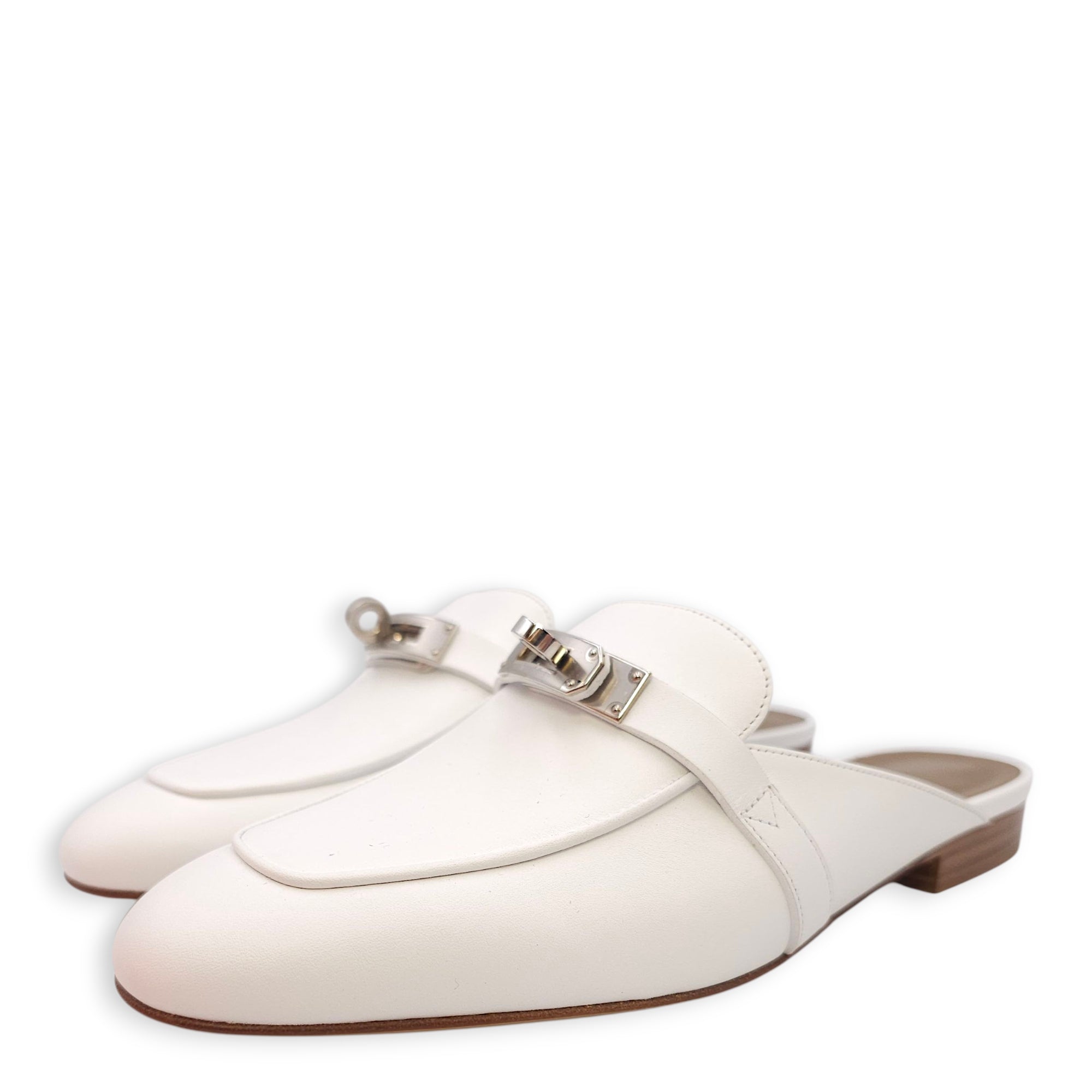 Oz 37 Blanc Mule in Calfskin, Palladium hardware