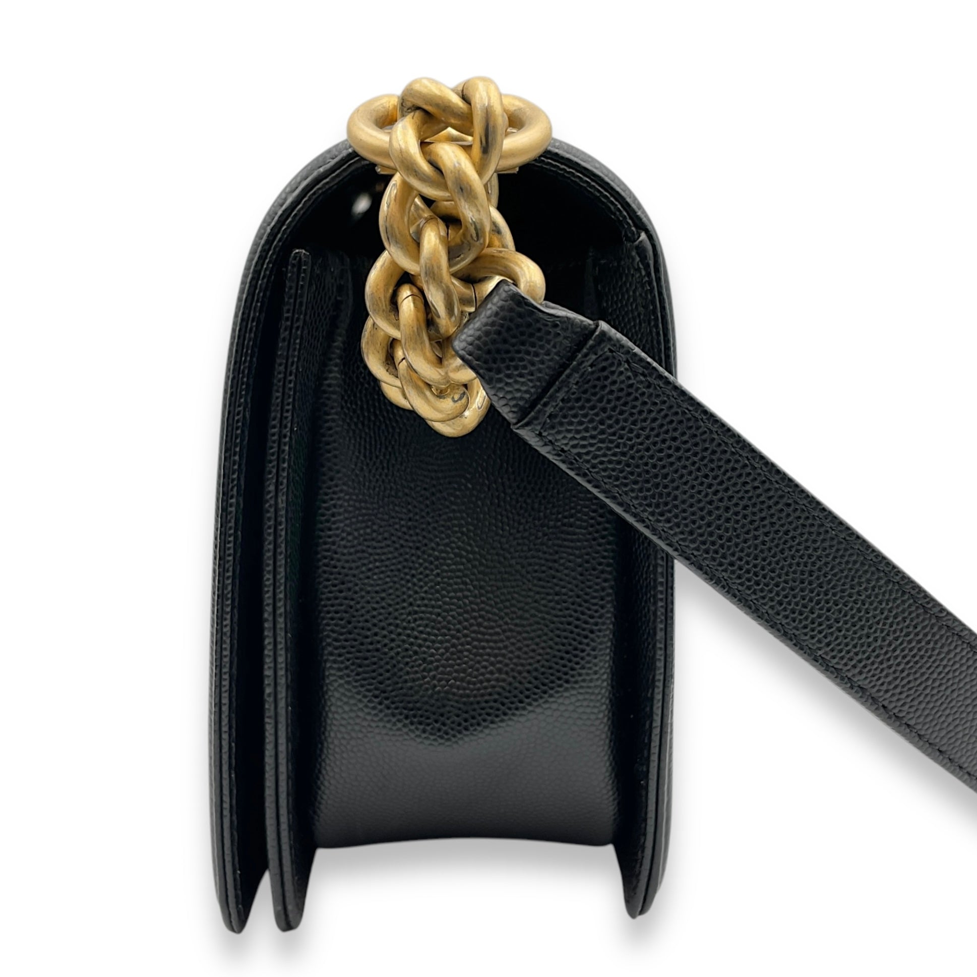 Be the first to review “Quilted Boy (25cm) Medium Black Shoulder Bag in Caviar Leather, Guilloche hardware”