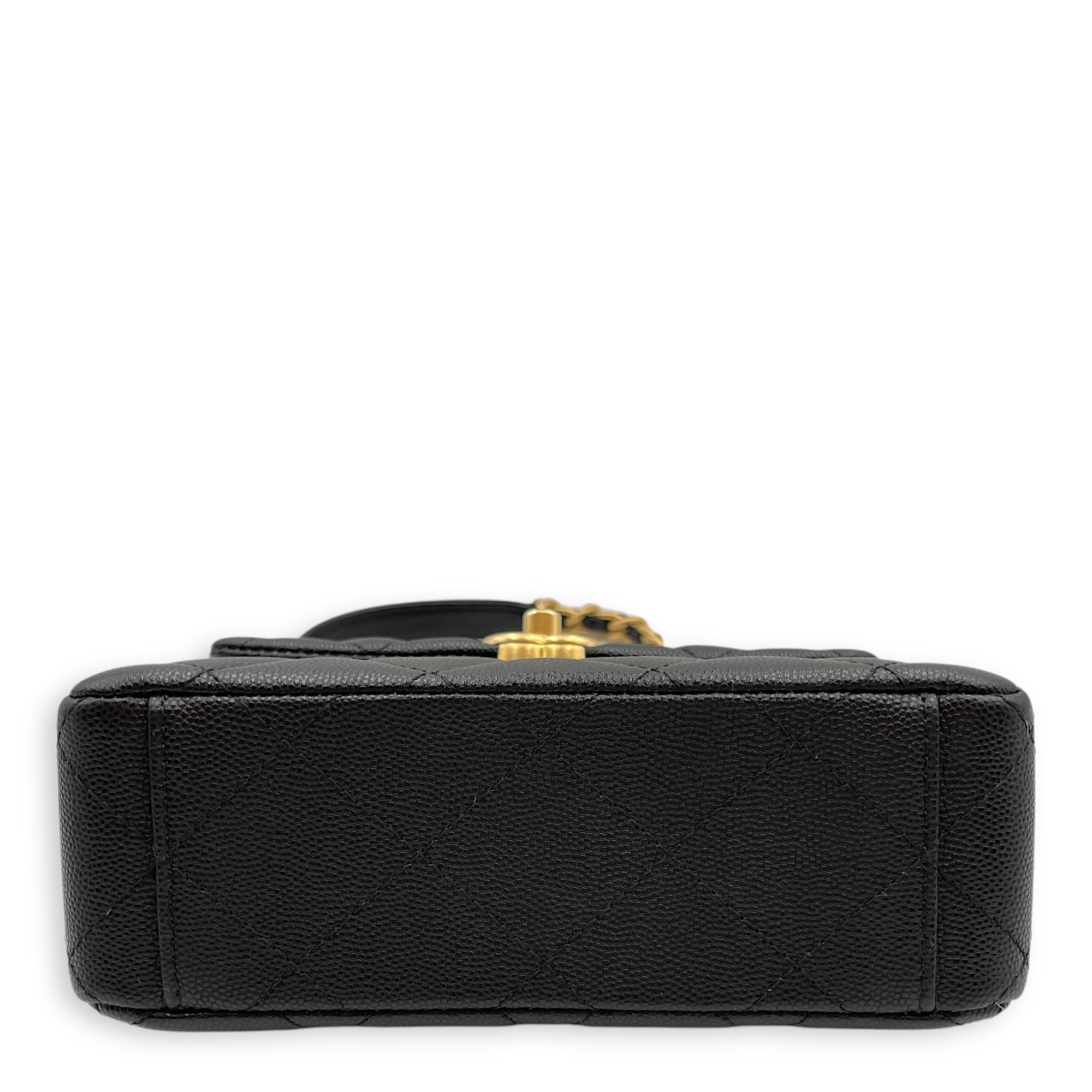 Quilted Rue Cambon 31 Mini Black Top Handle Bag in Caviar Leather, Brushed Gold hardware