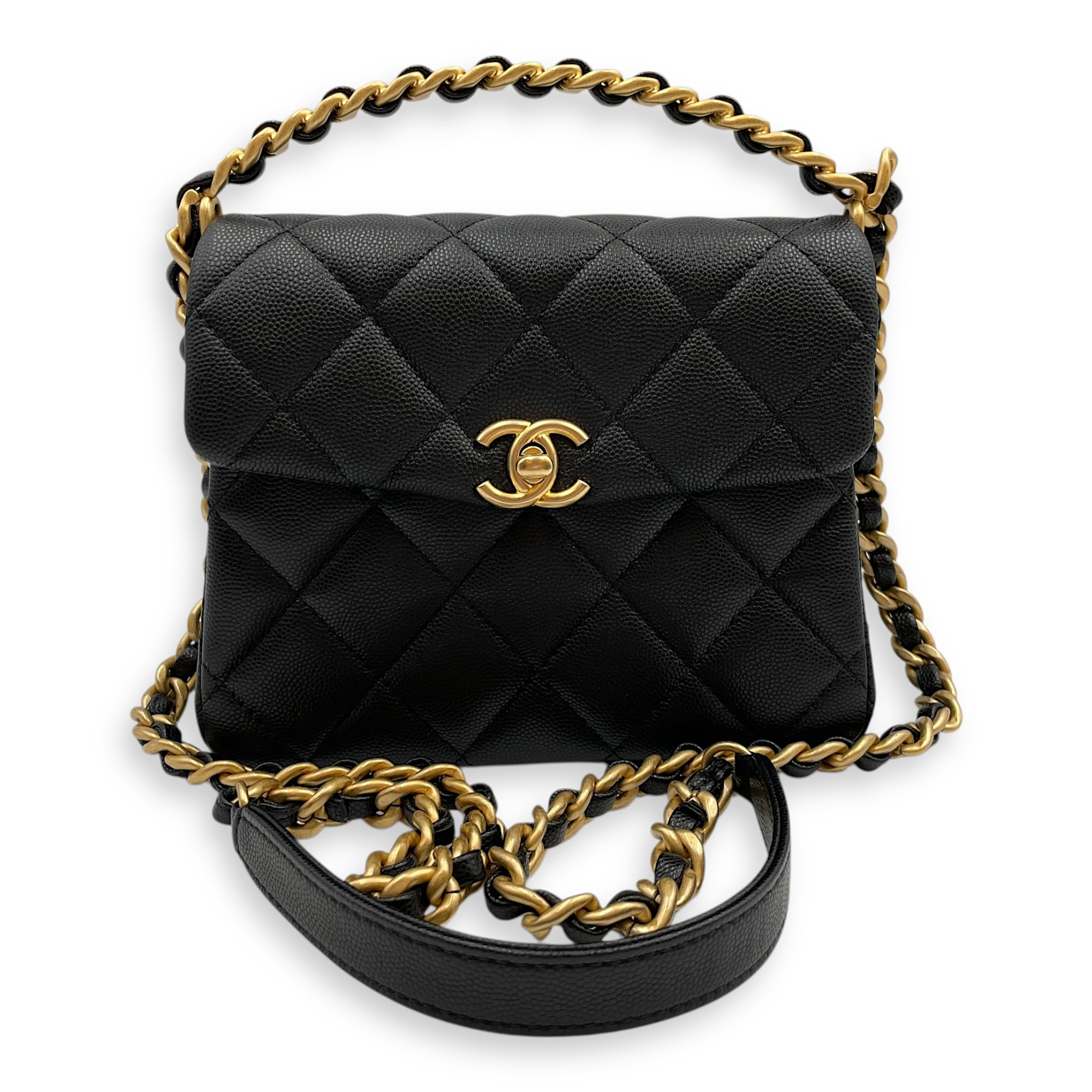 Be the first to review “Quilted Rue Cambon 31 Mini Black Top Handle Bag in Caviar Leather, Brushed Gold hardware”