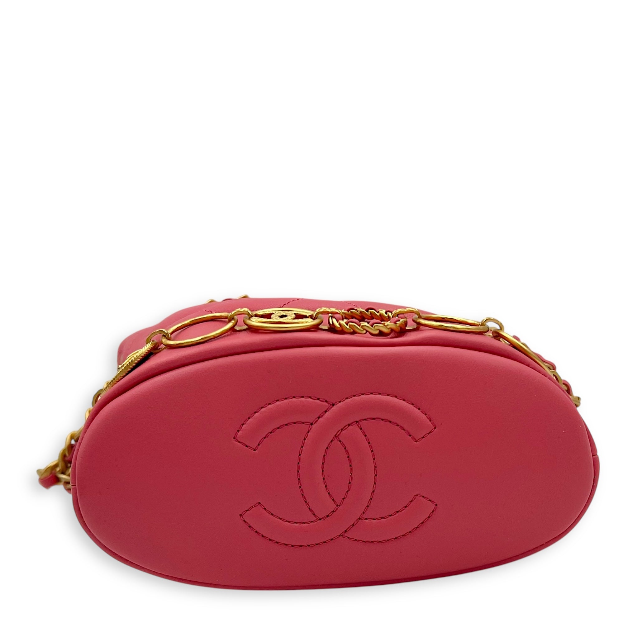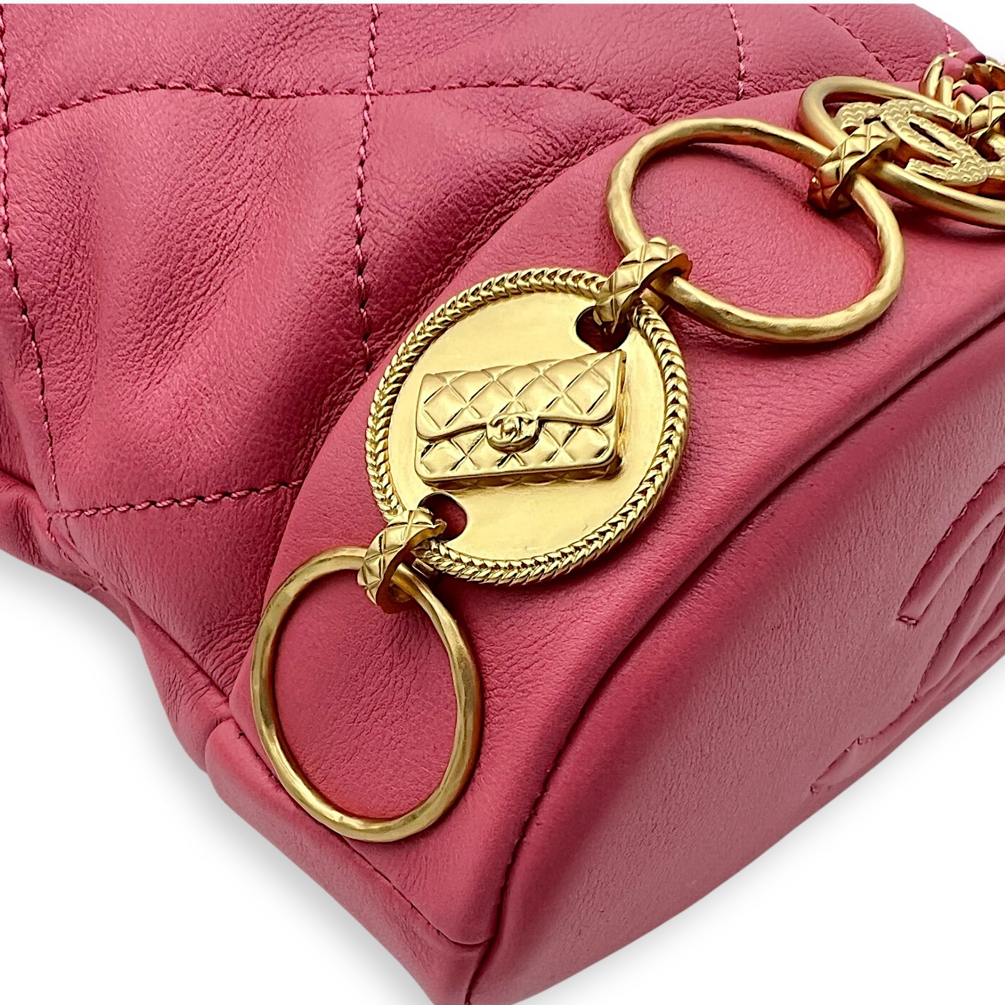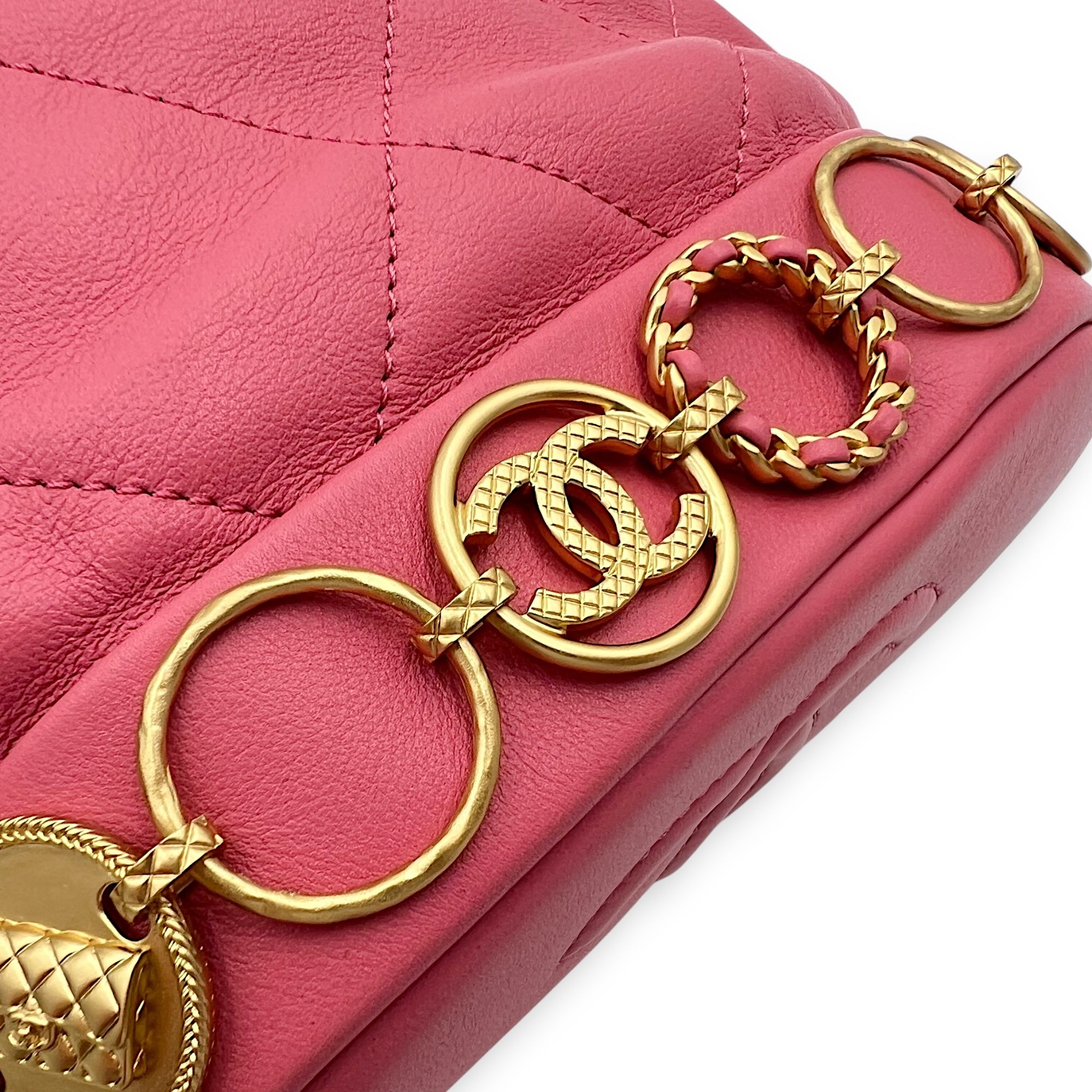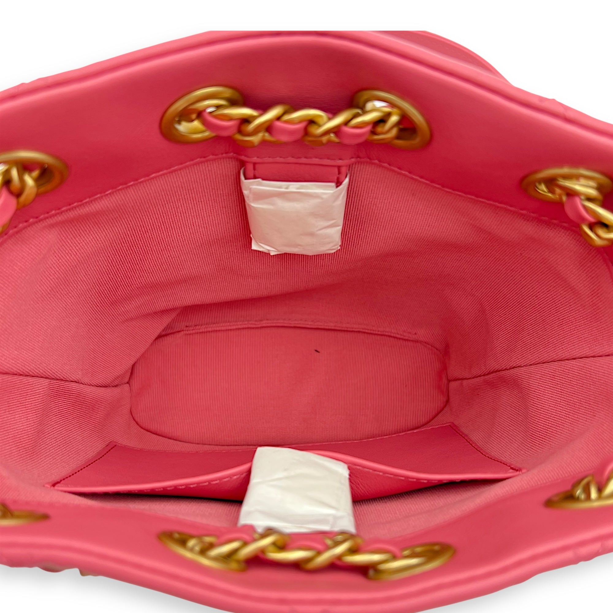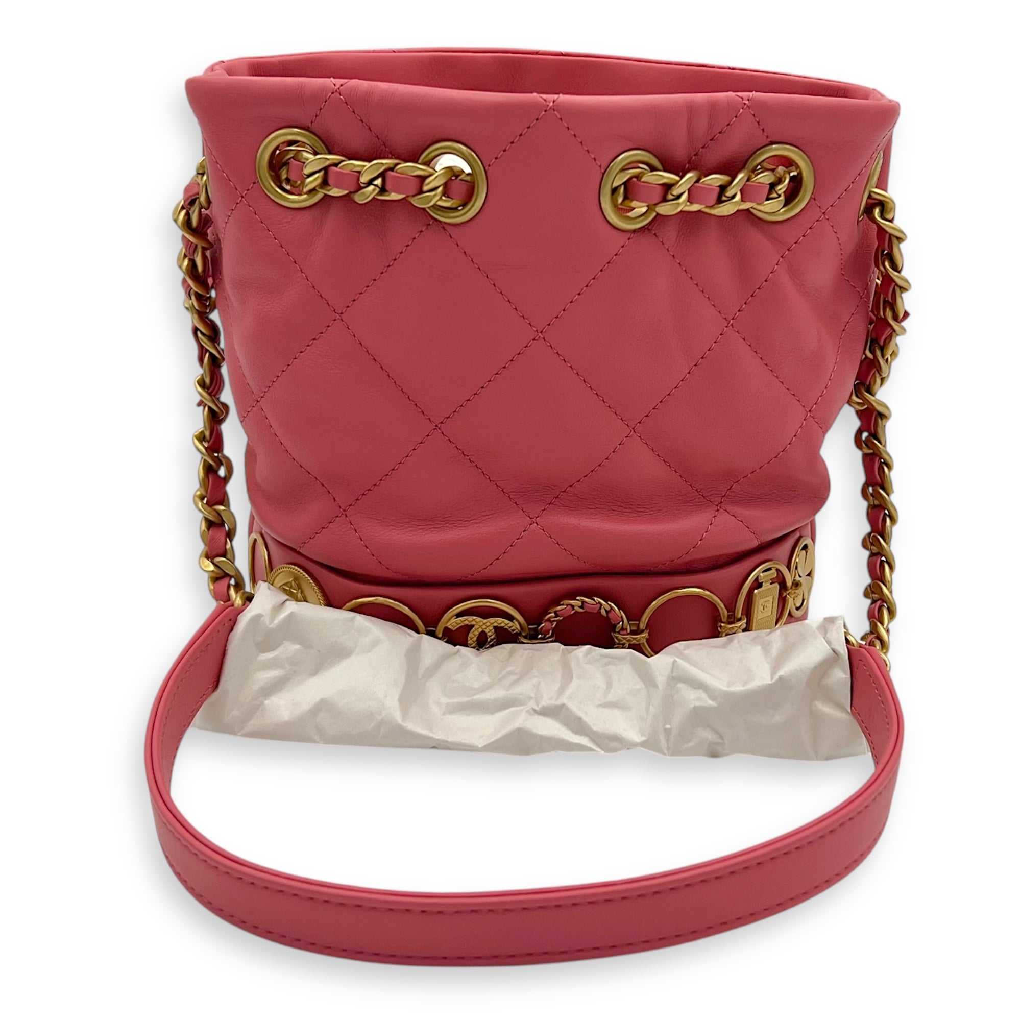 Be the first to review “Quilted Seasonal Bucket Bag Pink in Calfskin, Gold hardware”