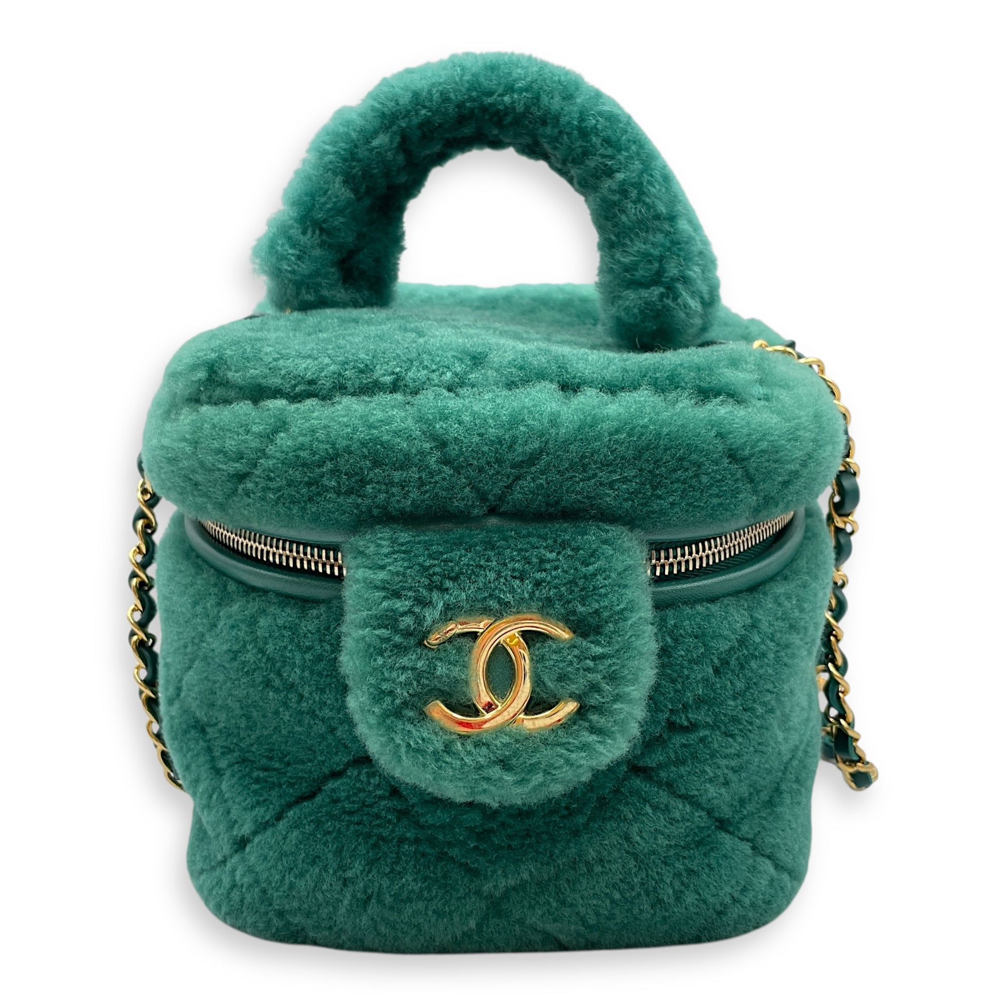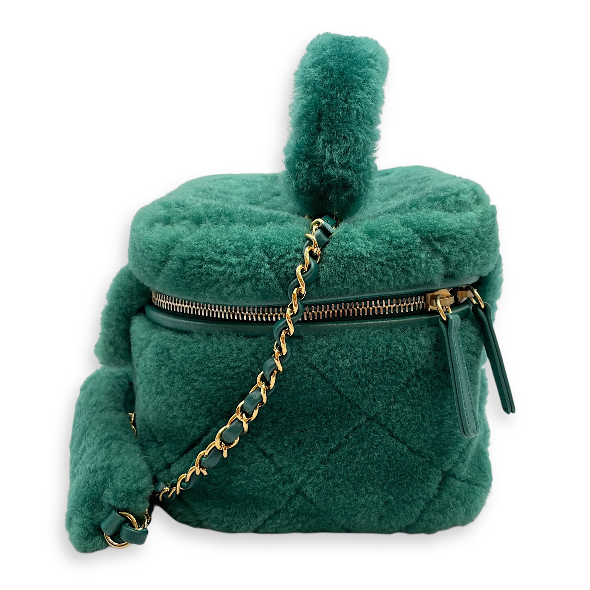 Be the first to review “Shearling Quilted Vanity Green Shoulder Bag in Lambskin, Gold hardware”